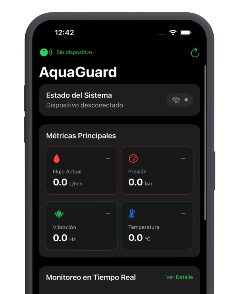 Desde alertas amarillas por goteos menores hasta alertas rojas por rupturas graves. Cada segundo cuenta: una fuga moderada puede liberar hasta 950 litros en 24 horas. AquaGuard le da ese tiempo de ventaja crucial.